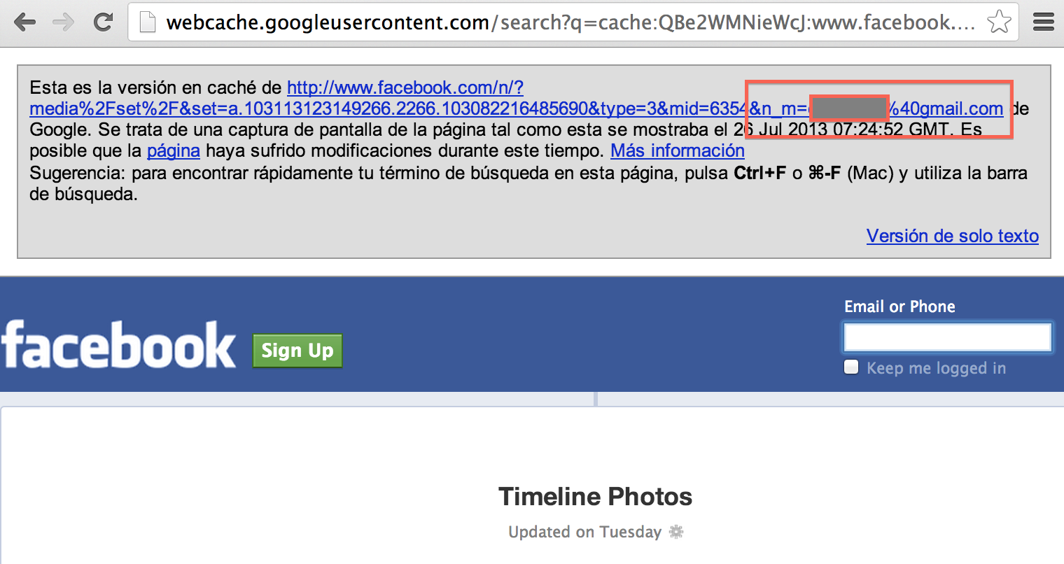 Como tampoco tienen ninguna protección para la caché con las etiquetas HTML o encabezados HTTP NoArchive aparecen también en ella, por lo que es fácil acceder a mucha información de lo que hacen los usuarios rastreando ese parámetro.
